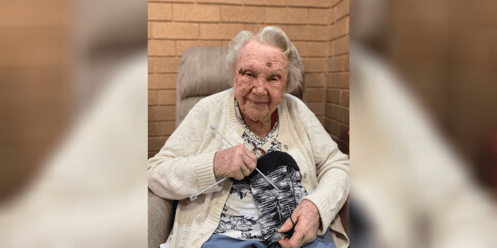 Since moving to Killarney Court Aged Care Facility over 7 years ago, Marjorie’s knitting has continued unabated, and supportive staff have ensured that she can continue her passion.