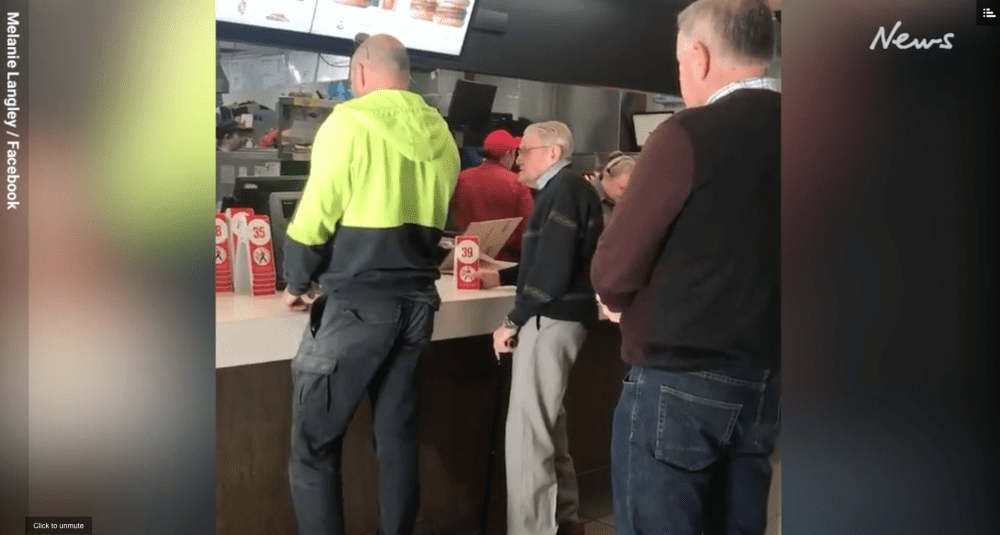 As the couple left McDonald’s, Mr Love stopped to bid the elderly gentleman goodbye. The old man can be heard to say, “Thanks so much. I appreciate it.”