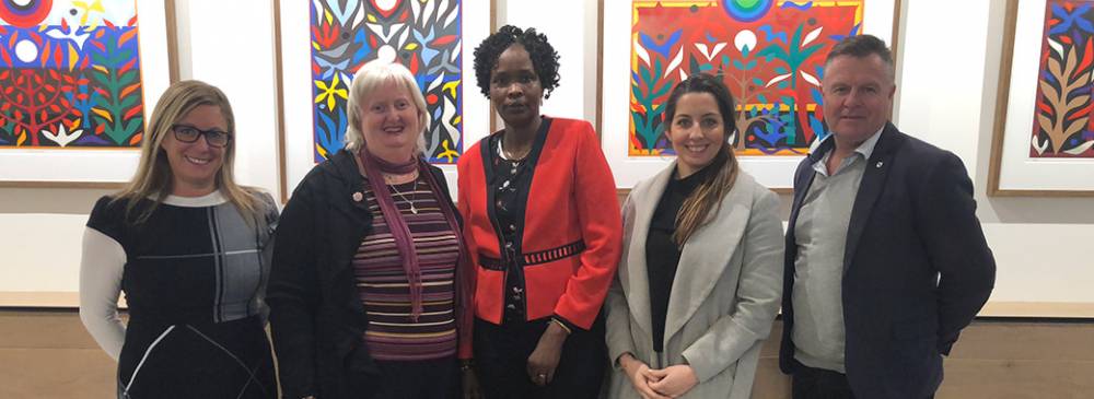 Image (from left to right): Wendy Fergie from Emprevo, Bridget O’Shannassy from VMCH, Interconnect participant Nyawarga Sham, Stacey Kraloglou from The Bridge and Matt Farrow from Victorian Government Department of Employment. (Image supplied.)